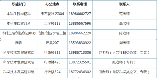 六、推免生奖励分认定部门联系一览表