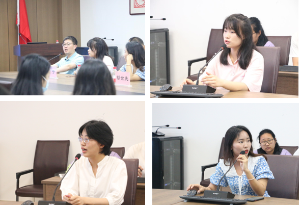 金雨欣就考研公共课、专业课及心态调整两个角度进行经验分享,从学习网课的经历到阅读书目的推荐,按照自己的时间规划,在逐层递进中不断完善自己的知识体系。丰钰辰建议大家及早明晰个人目标,在阅读中加强专业知识的积累,通过学习网课、阅读公众号等多种形式的复习方法开展多维度、全方面的考研备战。李应美从择校问题、复习计划、复习方法、备考心态四个方面展开经验分享,她强调要根据个人复习情况及时调整计划,厘清书本框架结构,逐一击破重点难点。