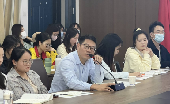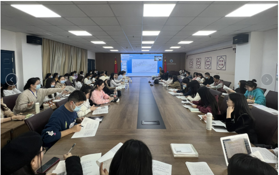 (通讯员 杨承骏)为夯实我院2020级汉语言文学师范专业学生的专业基础,提升师范技能和专业素养,更深层次地理解中学语文教育,2022年11月9日下午,我院邀请兼职硕导、沙市中学高级教师秦卓琼老师进行师范讲座。讲座于文科大楼705会议室举行,由副院长杨家海老师主持,中文系教师秦鹏举、章芳、周霜、杨蓉等老师现场参加。中文师范专业12005班全体同学和部分学科语文的研究生现场参加,中文系全体师生以线上和线下结合的方式参与了本次讲座。
