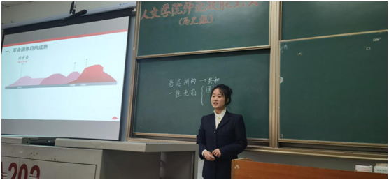 (通讯员 宫平 张锋军)为进一步适应基础教育改革发展对师范生培养的需求,增强我院师范生实践能力和创新能力,彰显师范特色,强化学生教学技能,我系于4月14日13:30—17:30,在13教A202举办历史系2020级师范技能竞赛。本次竞赛选手为2020级师范生,分别为:宁静、费可欣、谭诗雨、李思涵、陈江燕、谯佳颖、崔敏、孙卫、石环宇、张欣怡、苏再虎。活动邀请江陵中学宋东映老师,我系李义芳、卢川、赵标、周中梁担任评委。历史系2020级全体学生及2021、2022级部分学生参加了活动。