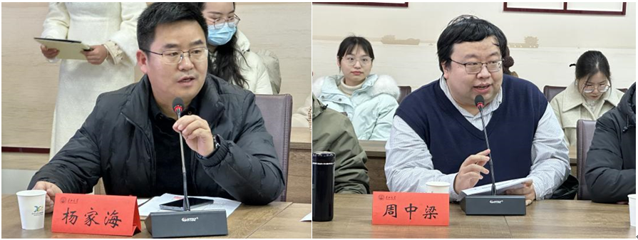 在开幕式上,副院长杨家海首先致辞,他肯定了同学们积极参与学术论文报告会的热情,在预祝大会顺利进行的同时,杨院长希望我院研究生细细打磨论文,提升写作水平和创新意识。其次,周中梁老师作为教师代表发言,周老师提出我院研究生要学会合理运用人工智能写作的要求,并举例指出慎重使用文献的重要性。上午9点,四个报告会分会场准时拉开帷幕。