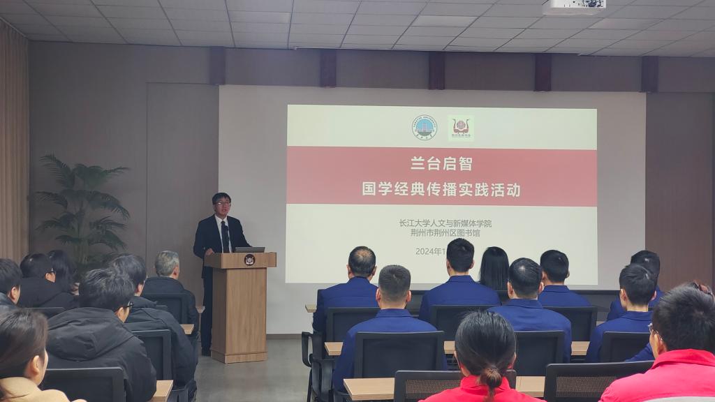 12月17日下午,荆州区图书馆在三楼报告厅举办了“兰台启智”国学经典传播实践专场活动,本次活动由我院副院长李征宇教授主讲。我院25名24级硕士研究生、荆州区消防救援大队指战员、江汉油田分公司荆州采油厂以及其他机关企事业单位的干部职工参加了此次活动。