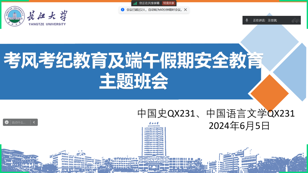 (通讯员 胡雅静)为进一步增强我院研究生安全意识,切实做好研究生教育管理工作,我院于2024年5月31日—6月6日利用线上线下方式开展了安全教育警示大会暨端午假期安全教育大会相关活动。