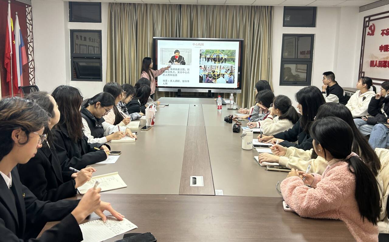 (通讯员 刘素心)10月21日晚7:00,我院于文科楼701室举办会议拍摄技巧培训。学院辅导员田华蓉老师、新闻社社长成筝、学生会主席团成员宋屹晗及院宣传部全体成员参与此次活动,本次活动由宋屹晗主持。