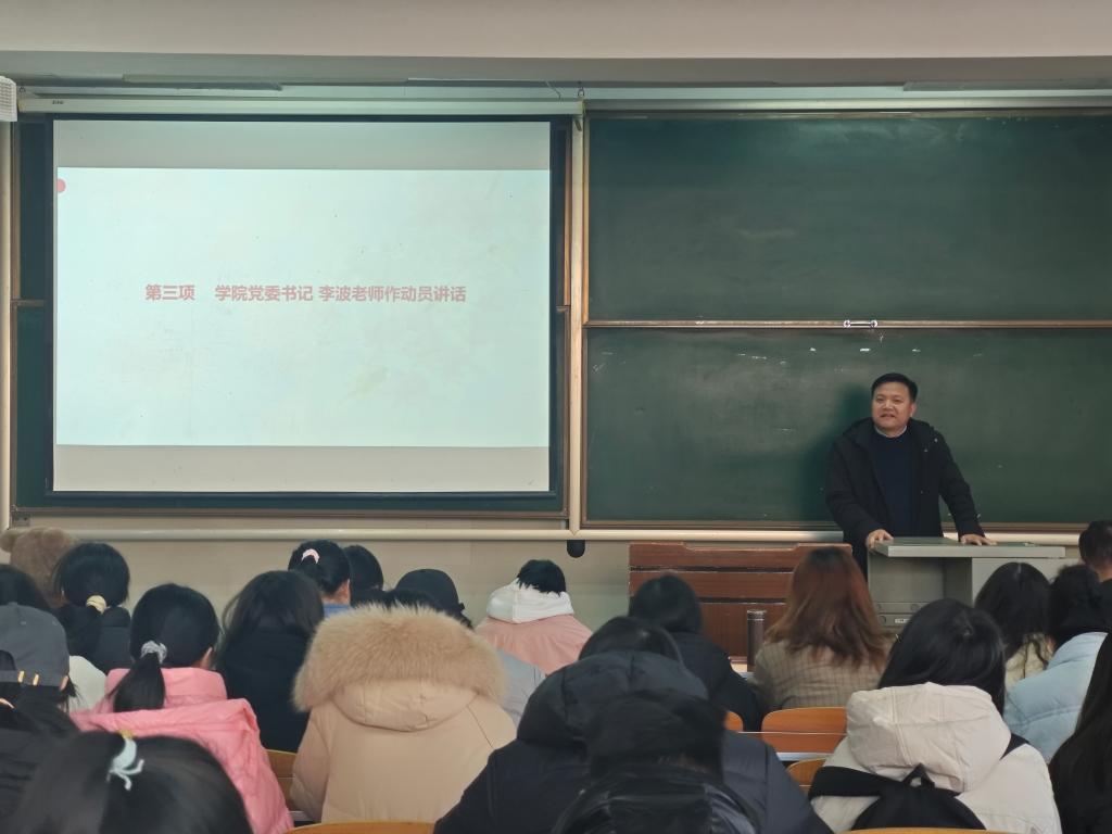 最后,李波老师在动员讲话中,对考研学子们的努力和付出给予了充分肯定。他指出,考研是一场挑战自我、追求卓越的征程。他鼓励大家在最后阶段要坚定信心、保持恒心、不忘初心,放下包袱,全力以赴。他表示,学院将为大家研考顺利进行提供全方位的服务和保障,祝愿同学们都能功不唐捐、一“研”为定,实现考研梦想。
