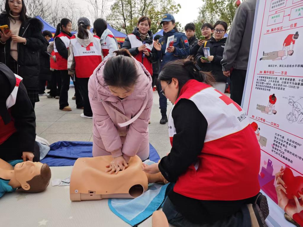 上午10时,师生赴荆街广场参与荆州市社会工作主题宣传活动。志愿者系统学习心肺复苏、紧急救援等急救技能,通过专业人员手把手教学掌握基础应急服务能力。活动现场还与社工群体深入交流,感悟“奉献、友爱、互助、进步”的志愿服务核心价值。