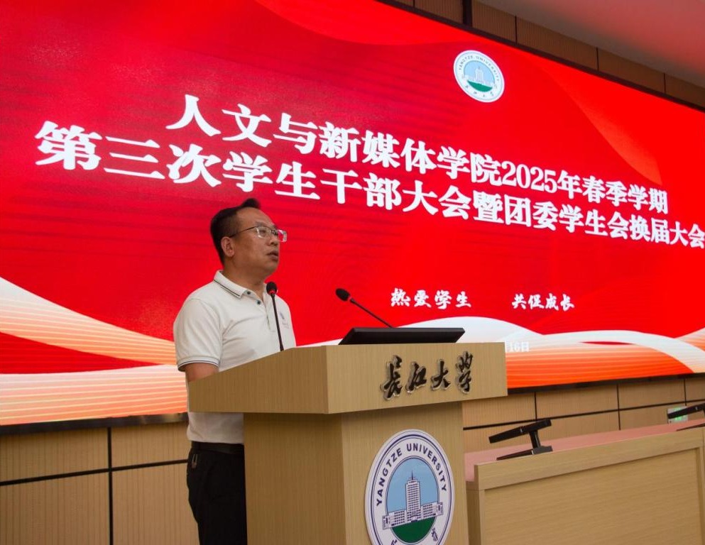 (通讯员:易孝佳/文 冷昭雨/图)为加强学生干部队伍建设,推动学生工作高质量发展,我院于6月16日在东校区11教报告厅举行春季学期第三次学生干部大会暨团委学生会换届大会。学院党委副书记竺正海、学工办主任龚玉云、辅导员耿传令及团学骨干与会,会议由耿传令主持。