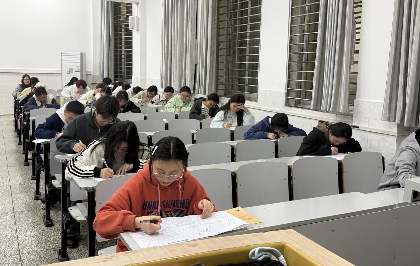 比赛现场秩序井然、学风浓厚。同学们端坐凝神、静心思考,笔尖轻落、沙沙作响,将熟记于心的诗词佳句化作工整笔墨;参赛学子全神贯注、沉着应答,千古名篇在卷页间徐徐铺展,字里行间尽显诗词韵律之美,充分展现了我院学子扎实的人文素养与积极向上的精神风貌。