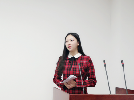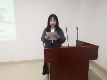 比赛开始前,八位选手通过抽签决定了比赛顺序。选手精彩绝伦的演讲吸引了各位评委的注意。其中陈礼晴同学将自己母亲因信仰而勇敢奋斗的故事与自己对党的科学理论的信仰相联系,展现了信仰的力量;蔡甜甜选手通过感动中国十大人物廖俊波的事迹,宣扬十九大“不忘初心”的精神;何玉莹选手结合自己的梦想谈论到新时代青年的应有的姿态。演讲过后评委针对每位选手的表现做出了对应的评价及改进建议。最后,所有选手们合影留念。