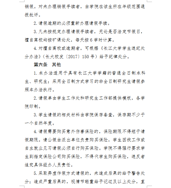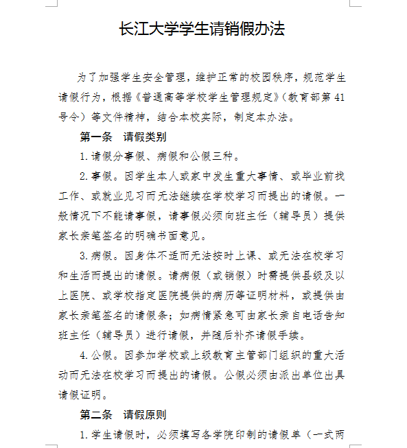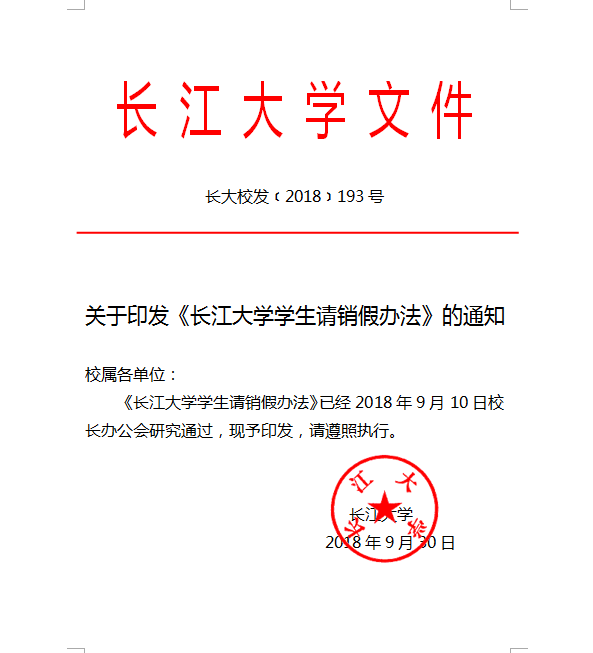 伟德国际1946学生请销假办法 长大校发【2018】193号
