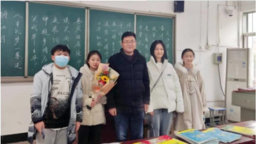 1月6日,由黎巧负责的四人小组率先在湖北省黄冈市黄梅县第五高级中学进行宣讲,小组在前期进行组内任务分工,分别负责联系高中老师确定宣讲时间、制作讲演PPT、收集整理素材、准备演讲内容等环节,他们得到校方的大力支持与肯定,依次有序推进活动进程,并在回访圆满结束后与师生合影留念。