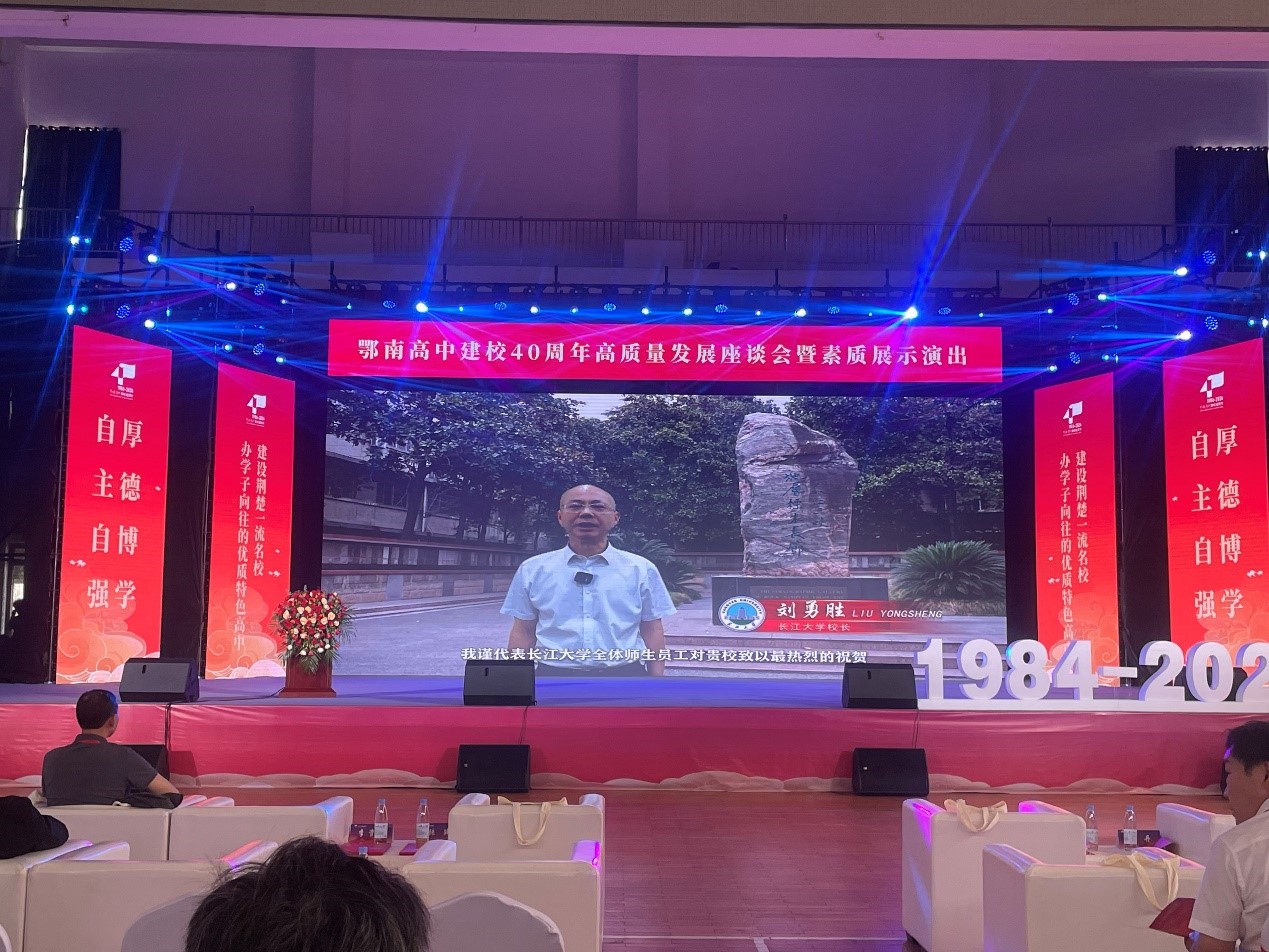 10月4日上午,在北大、华科大、武大等知名高校的贺信和校长、校友的祝福中,鄂南高中建校四十周年高质量发展座谈会暨素质展示演出开始。鄂南高中校长、各高校领导代表、中学校长代表、校友代表及咸宁市领导依次上台发言致辞。校友与鄂南高中师生联袂表演精彩节目,展示了学校素质教育的丰硕成果。