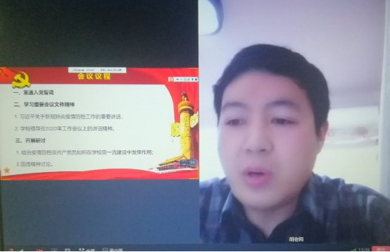 4月13日晚7时,文学院新闻和历史专业联合学生党支部、中文专业学生党支部在线上以视频会议的形式召开4月份支部主题党日活动,此次活动的主题是“深入学习贯彻习近平总书记关于疫情防控工作的重要讲话和指示精神”。文学院党委副书记胡世先老师出席会议,全院学生党员准时到会,本次活动由殷友豪同志主持。