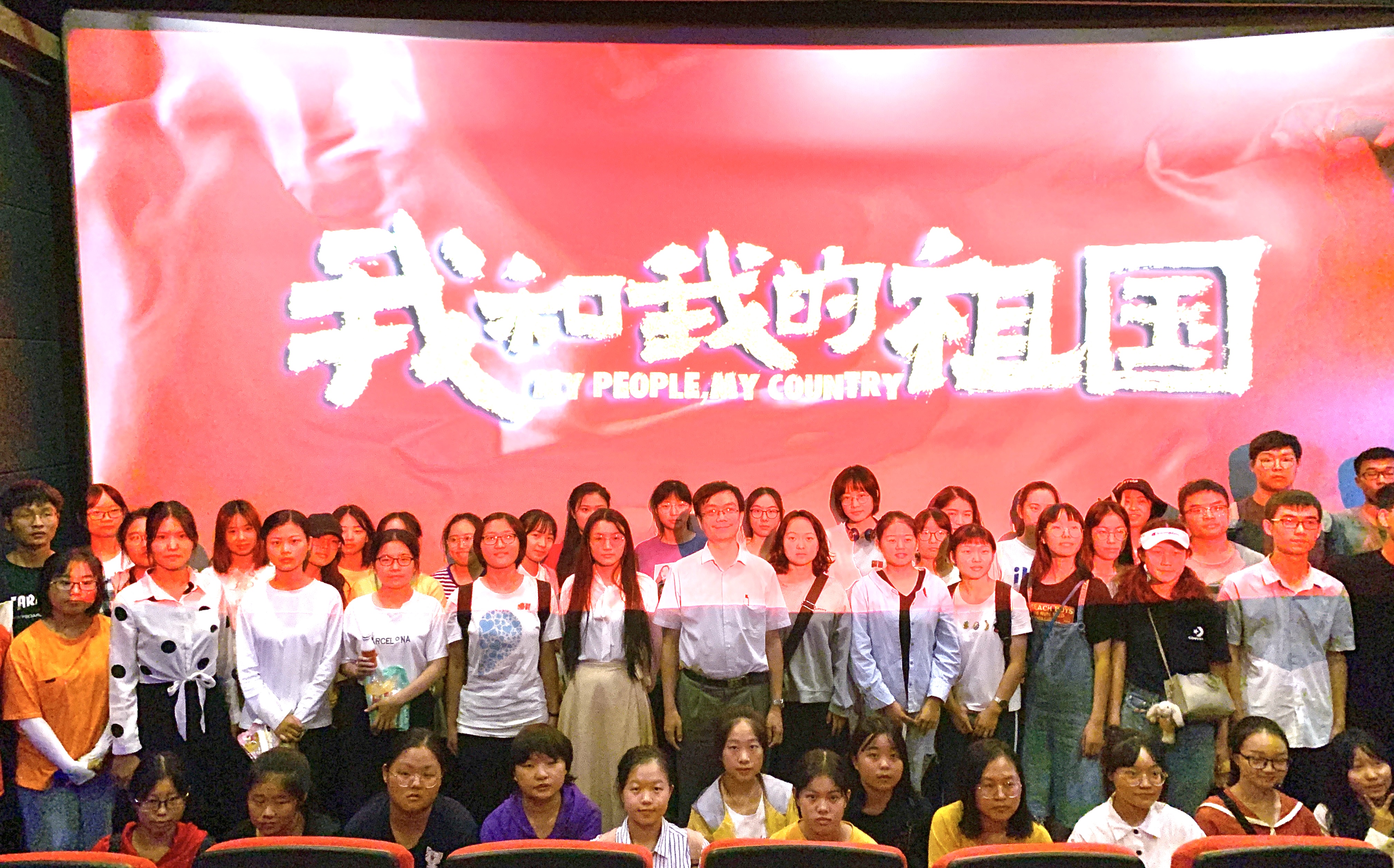 阅兵仪式结束后,根据学院党委中心组的统一安排,副院长余劲东、辅导员何宁陪同西校区国庆留校的56名大一同学们共同观看电影《我和我的祖国》,一起见证中华人民共和国从站起来、富起来到强起来的伟大飞跃。从开国大典到中国第一颗原子弹成功爆炸,从女排夺冠到香港回归,从北京申奥成功到抗战胜利70周年阅兵,再到神州十一号飞船返回舱成功着陆,披荆斩棘的每一步,都印证着中国人民走在新长征的大路上,不敢有丝毫自满,但始终怀有无比自信。