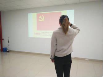 本次活动分三项议程进行。会议第一项,全体党员重温入党誓词,由新党员谭欣同志领誓;第二项:全体党员诵读《党章》中的第七章《党的纪律》。