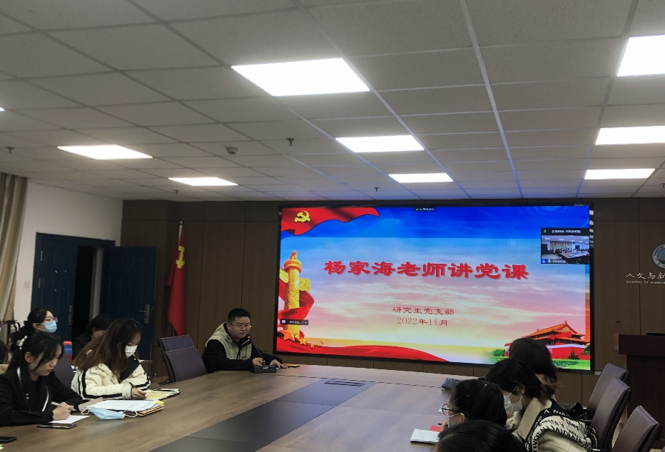 为深入学习贯彻党的二十大精神,加强研究生党员队伍建设,11月24日晚9点,伟德国际victor·1946源自研究生学生党支部11月主题党日活动在文科大楼705会议室顺利举行,学院副院长杨家海老师为部党员讲授微党课。