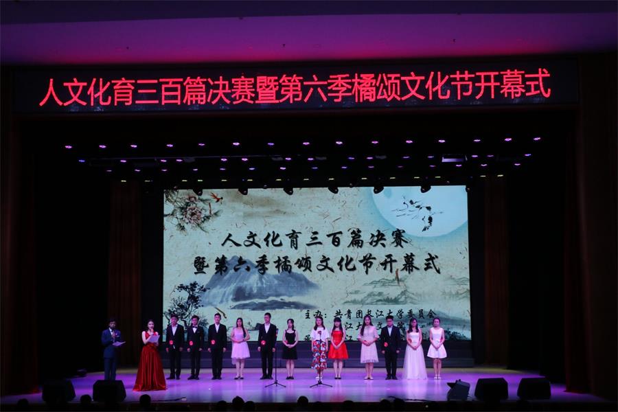 (通讯员 王 欢)“颂橘明志,尚文立身。”4月22日晚,东校区大礼堂灯光闪耀,文学院“人文化育三百篇”决赛暨第六季橘颂文化节开幕式在此隆重举行,院长许连军、党委书记杨鑫、学生工作部副部长毛洪文、副院长李华平、党委副书记周书航及部分教师亲临现场观看。