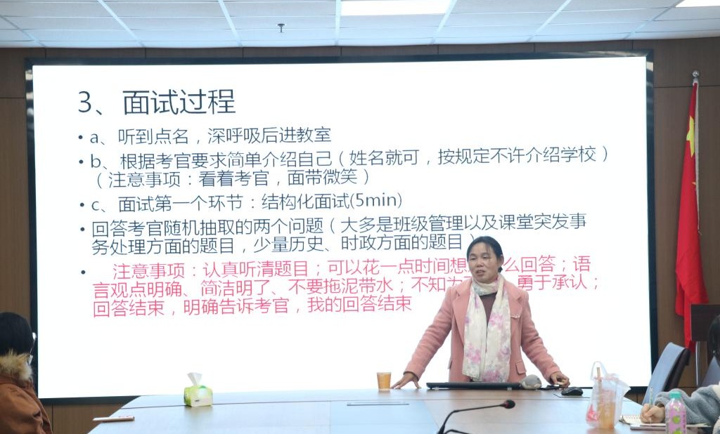 (通讯员 李欣 余钰滢)教资面试在即,为了使我院学生深度了解教资面试的基本情况,做好充分准备,顺利通过考核。12月22日晚,我院特邀中文系老师周霜于文科楼705会议室开展教资面试辅导讲座,分享2021年教资面试技巧,50余名同学参与此次讲座。
