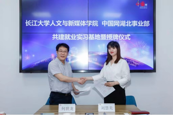 中国网湖北事业部主任严星介绍了中国网的基本情况。我院院长何世龙介绍了学院发展情况,并与中国网湖北事业部政务服务部总监刘慧美在共建协议上签字。