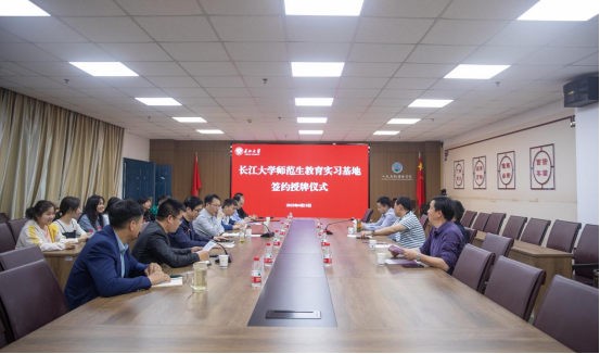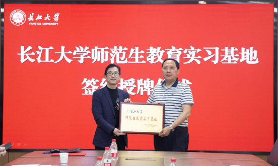 4月15日,学院在文科大楼705会议室举行师范生教育实习基地授牌暨兼职硕士生导师聘任仪式。湖北省咸宁高级中学党委书记、校长朱大浩,副校长石深敏、徐光春、何伟,我院院长何世龙、党委书记杨克非等领导参加仪式。仪式由学院副院长杨家海主持。