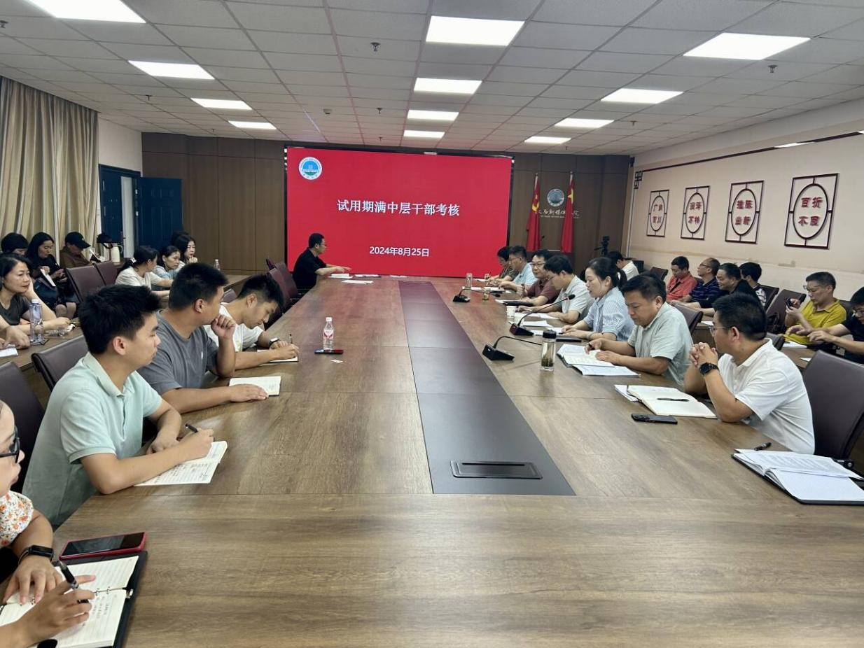 会前,校组织部副部长沈谦来院对试用期满的两位中层干部进行考核,党委书记李波、副院长柯艺分别述职,全体教职工对两位干部进行测评。