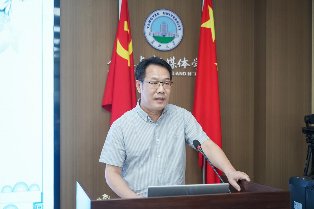 研究生导师代表吴新平老师结合自身经历,向同学们表达了殷切的期盼。以“凡事预则立,不预则废”来鼓励同学们思考学术研究和未来工作方向,努力提高学术素养;以“操千曲而后晓声,观千剑而后视器”提醒同学们要勤奋学习,学会学习,厚积薄发,落笔生辉;以“越禽惜羽毛,不向恶木栖”来教育大家要立言先立德,作文先做人,坚持守正与创新的统一。