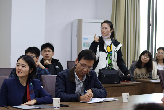 会议伊始,柯艺老师阐释了短视频在学科教学中的影响,并代表广大师生对梁刚建编辑的到来表示热烈欢迎。