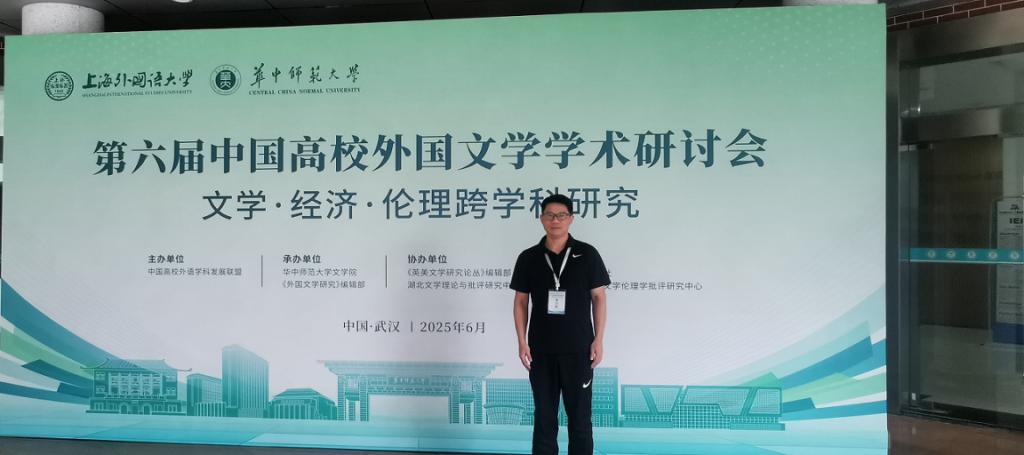 6月27至29日,我院教师秦鹏举赴华中师范大学参加了第六届中国高校外国文学学术研讨会,会议主题为“文学·经济·伦理跨学科研究”。本次会议由中国高校外语学科发展联盟主办,华中师范大学文学院《外国文学研究》编辑部承办。会议聚焦文学、经济与伦理的交叉研究,旨在促进我国高校文学研究的高质量发展,深化跨学科对话。来自上海外国语大学、北京大学、北京外国语大学、武汉大学、华中师范大学、伟德国际1946等近百所高校的150余位学者齐聚桂子山,共襄学术盛宴。大会围绕会议主题进行了7场主旨发言以及13组专题讨论。