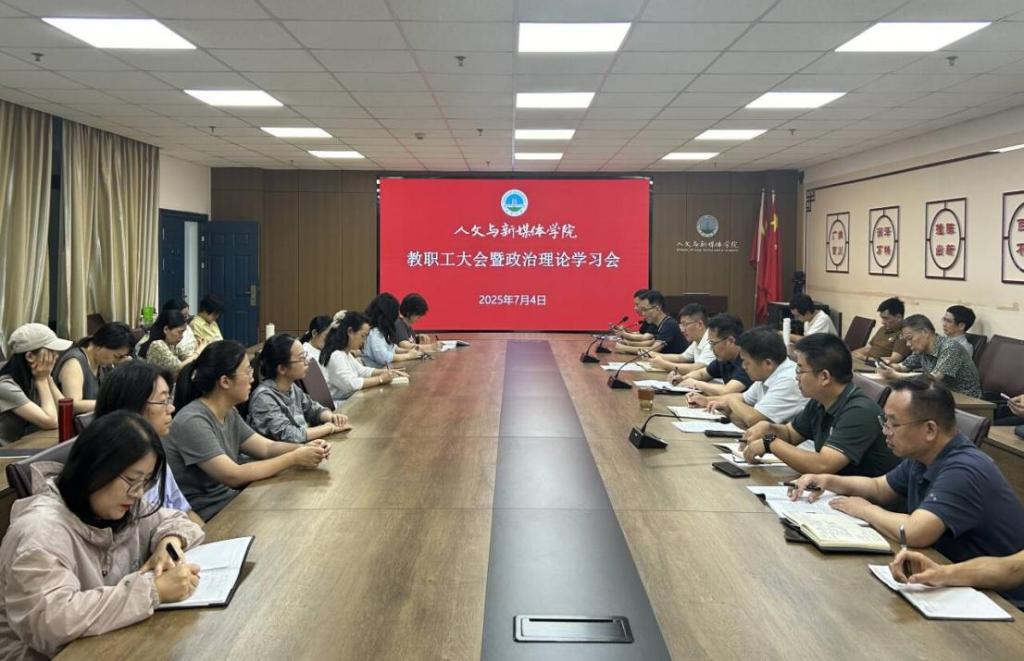 (通讯员 田华蓉)7月4日下午,学院在文科楼705会议室召开全院教职工大会暨政治理论学习会,通报近期工作,部署假期重点工作,并组织政治理论学习。院党委书记李波主持会议。