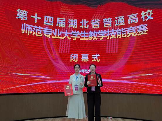 2025年11月8日,第十四届湖北省普通高校师范专业大学生教学技能竞赛决赛在华中师范大学圆满落幕。我院中文(师范)12201班李淑琦(指导老师:徐思雨、袁飘)获得高中语文组一等奖,中文(师范)12201班汪楚怡(指导老师:章芳、徐思雨)获得初中语文组二等奖。此外,历史系张诗语(指导老师:杨蓉、卢川)在初赛中获得高中历史组三等奖。